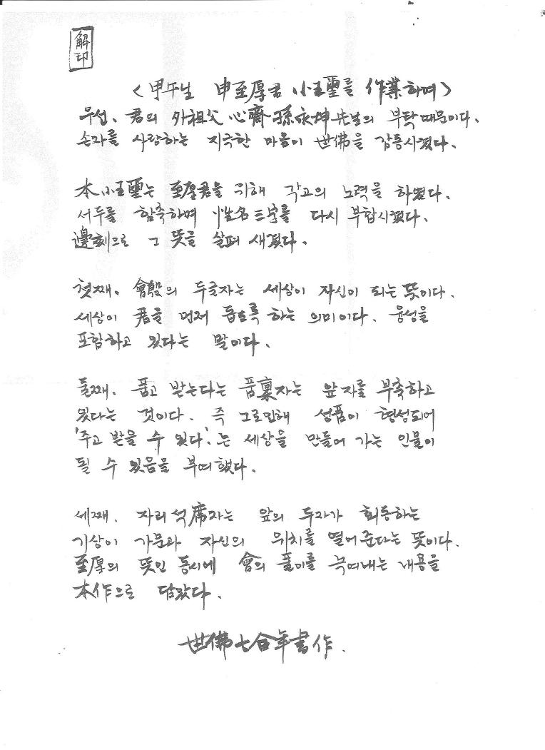 - 至厚를 생각하면서