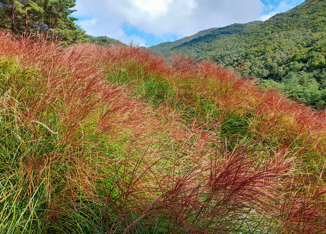 "그라스 억새"라 하여 종류도,색깔도 다양하네.사진 아래는 2022.10.26일.거창 Y자 출렁다리에서 찍은 것이다>
