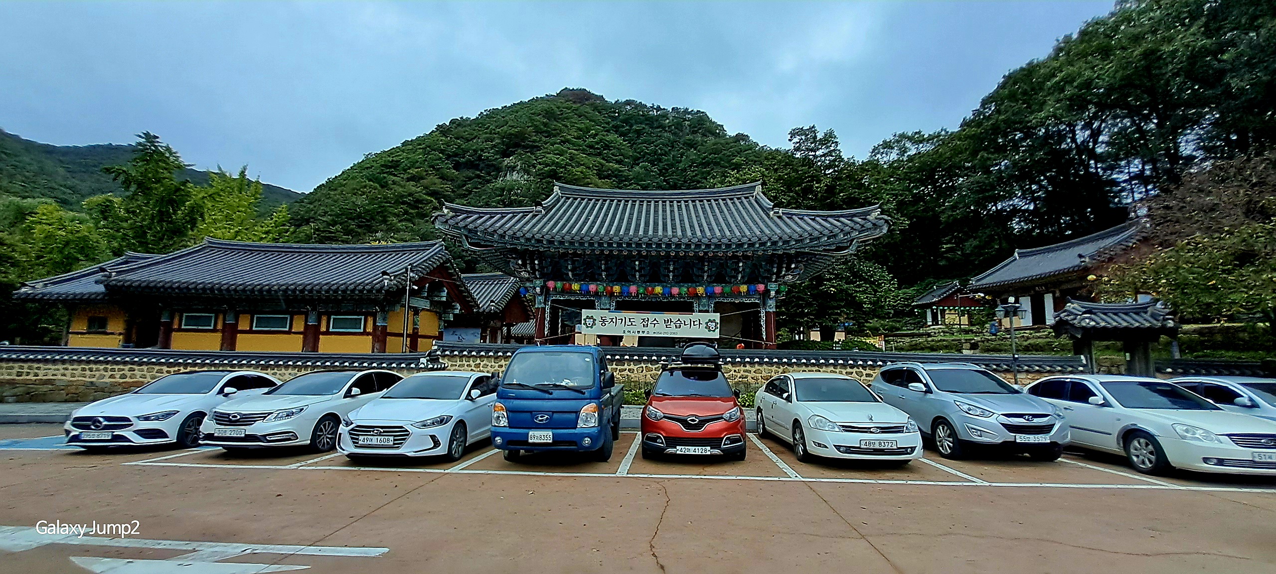 사찰 부지가 좁아(입지 조건이 더 확장하지는 못한다) 주차장이 모자라는 것 같다.