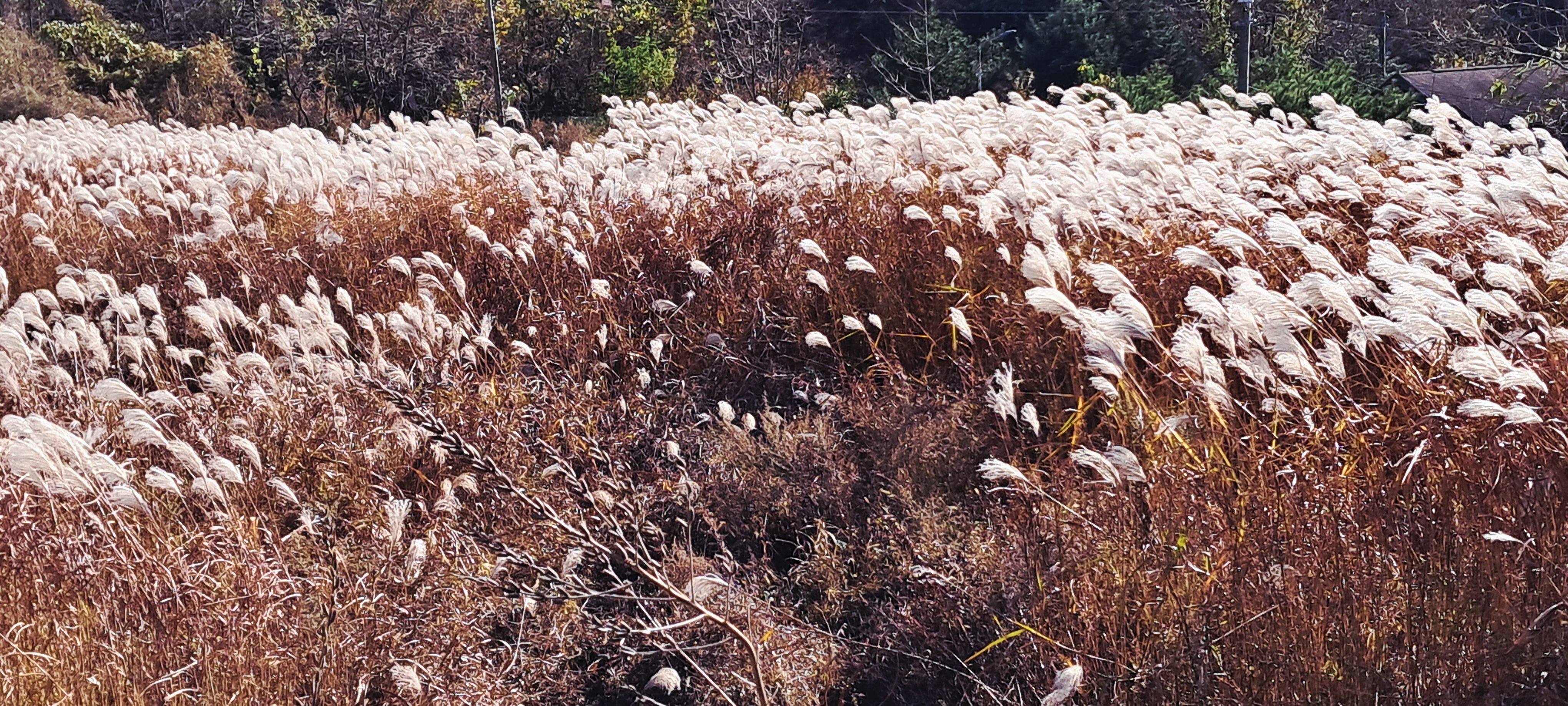 여기에 세종대왕태실 생명문화공원이 조성되어 있고 아래에는 인촌저수지가 있다.군데군데 억새가 바람에 나뿌낀다.