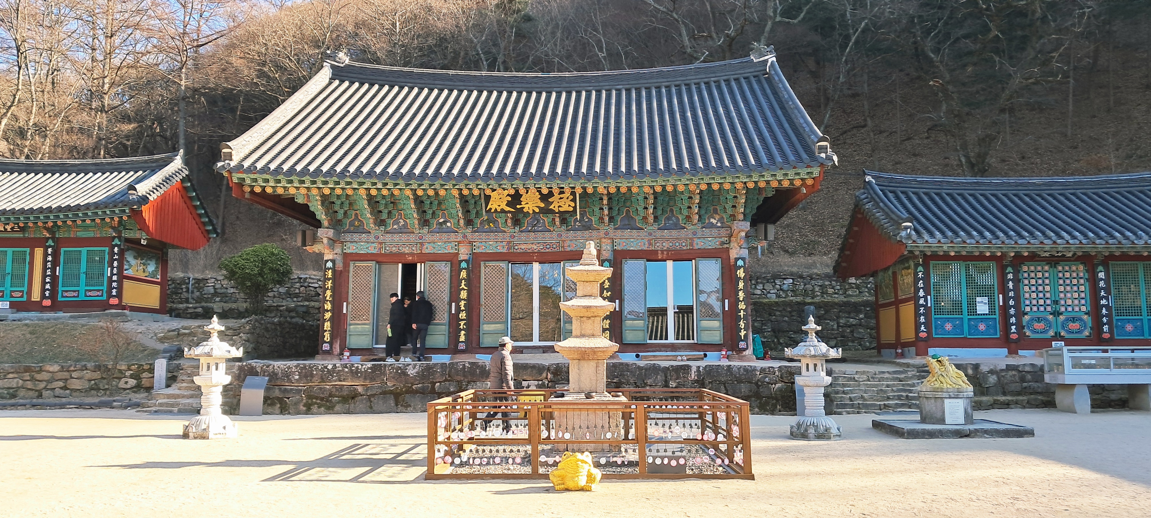 慈雲門 을 지나 天王門을 지나면 極樂殿이다.삼층석탑 앞 금두꺼비에 대해서는 뒤에 적는다.