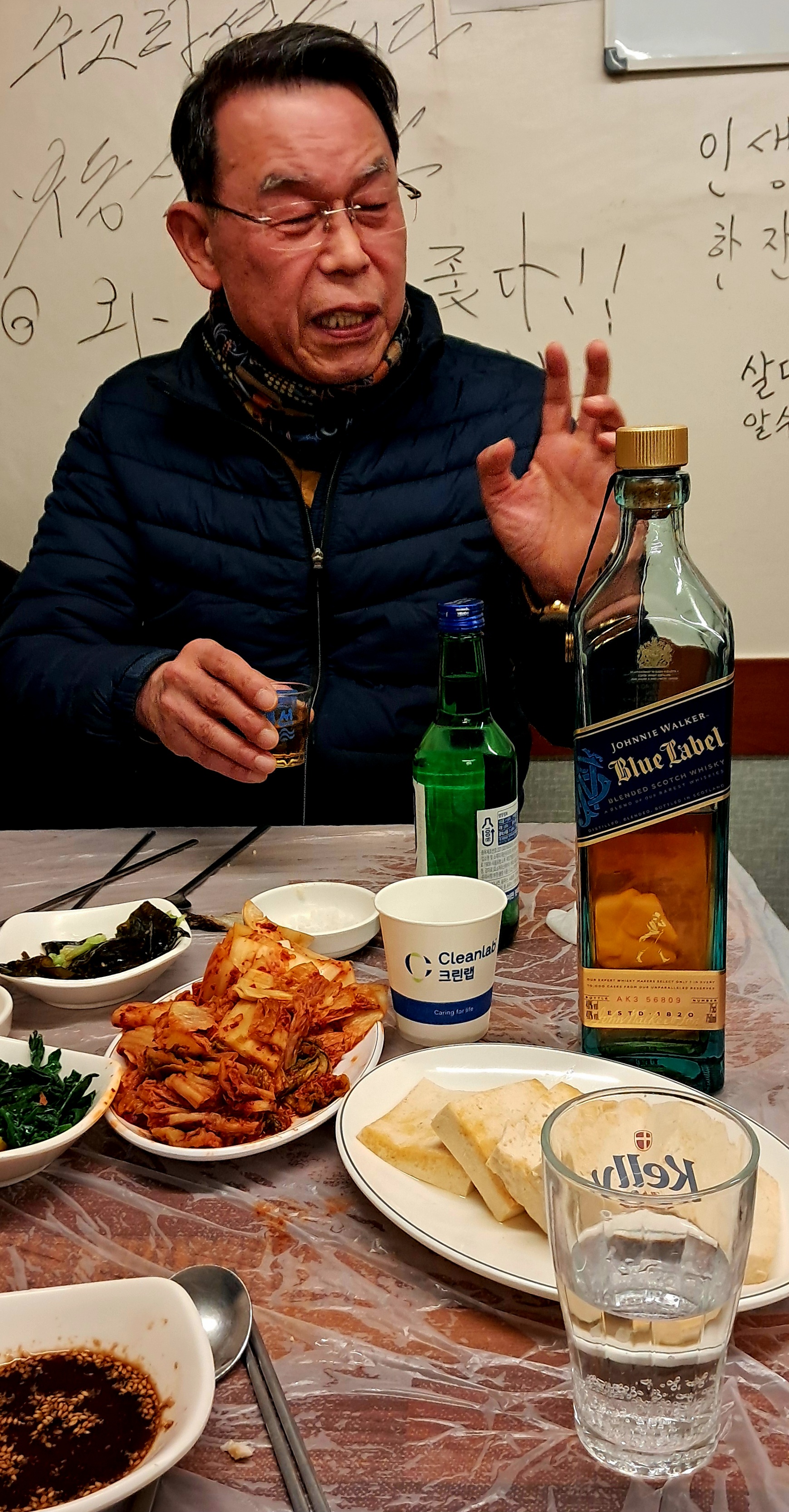 종옥이가 조니워커(블루)를 가지고 와서 잘 마셨다.