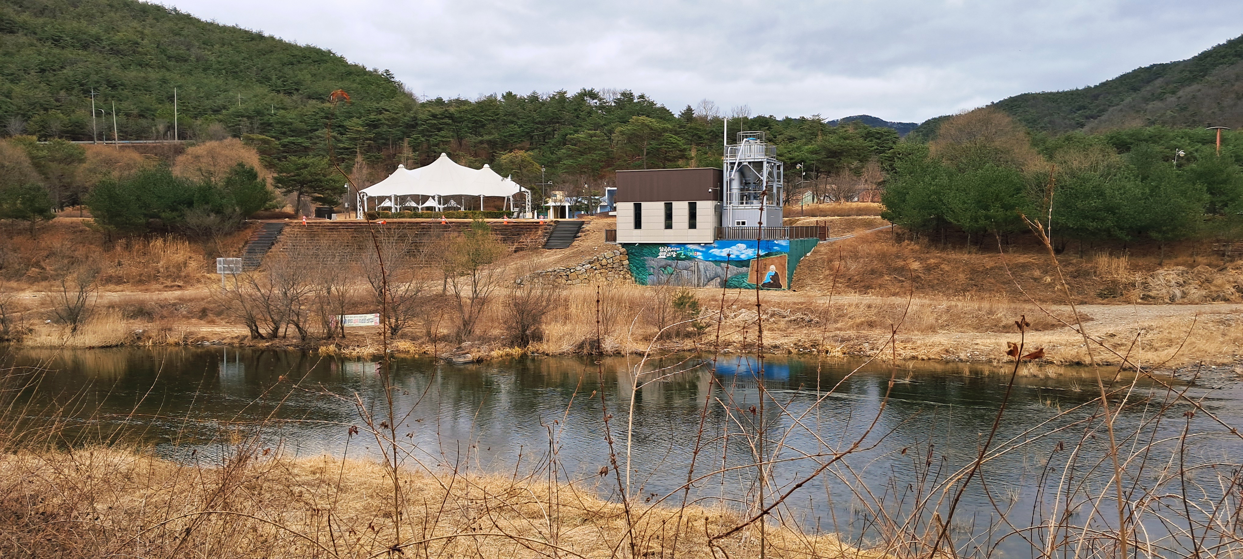 압곡사로 가는 도로 변(군위호 상류)에서 멋진 풍경도 본다.