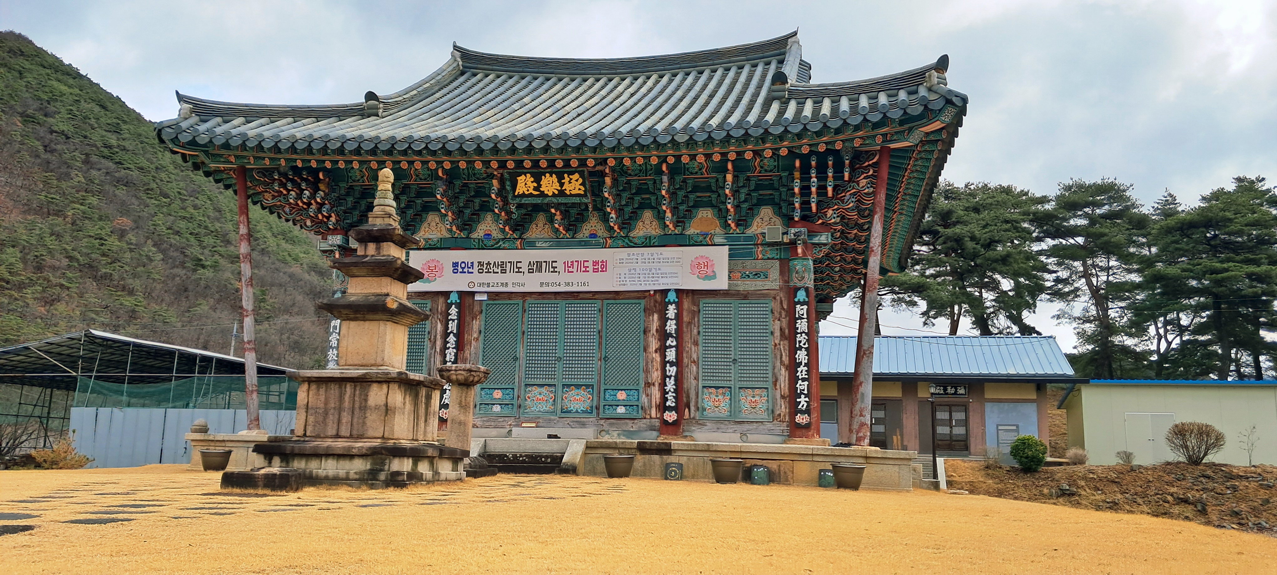 極樂殿과 삼층석탑.