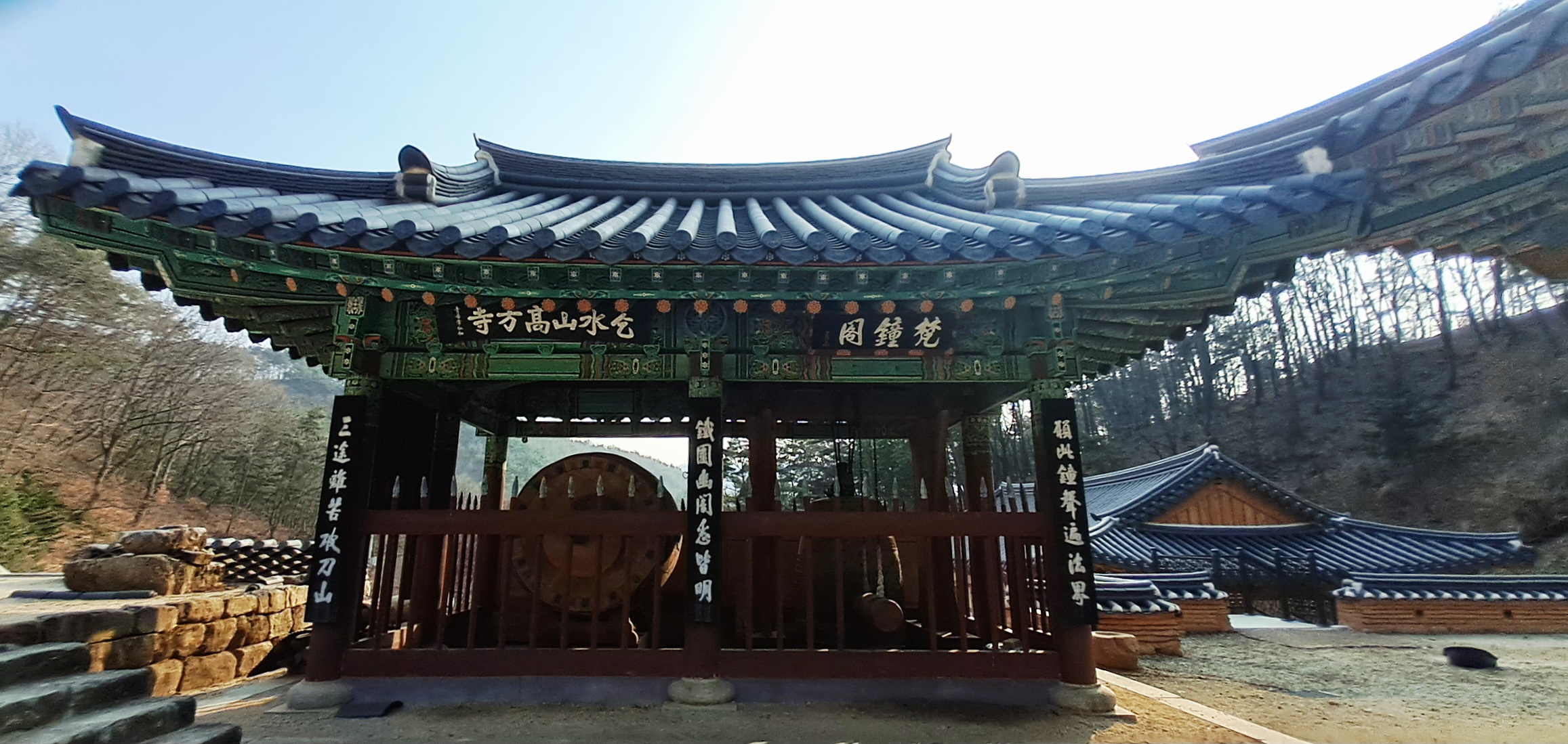 백마산의 옛 이름은 氣水山이라 범종각에는 "기수산 고방사"라고 적혔다.