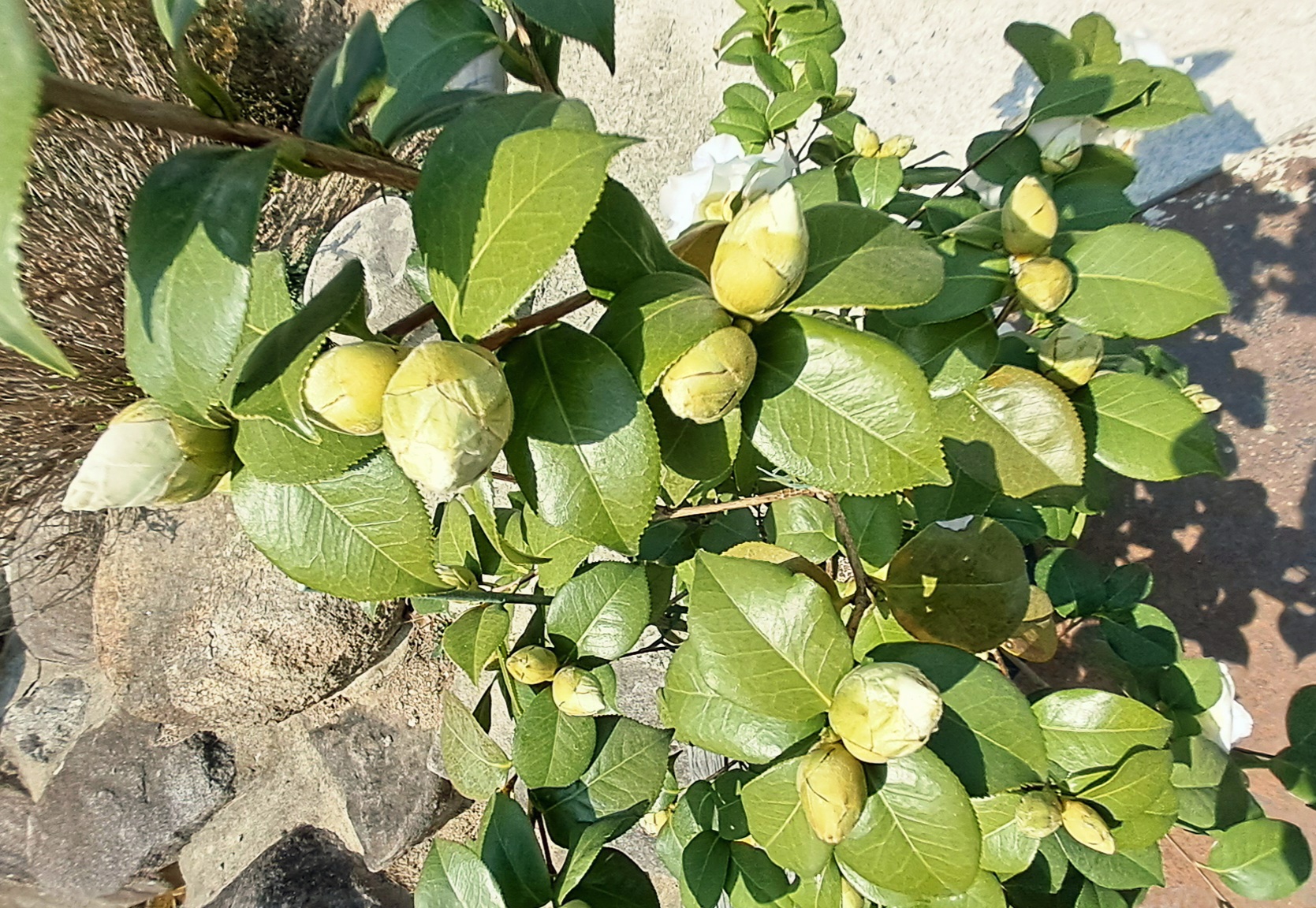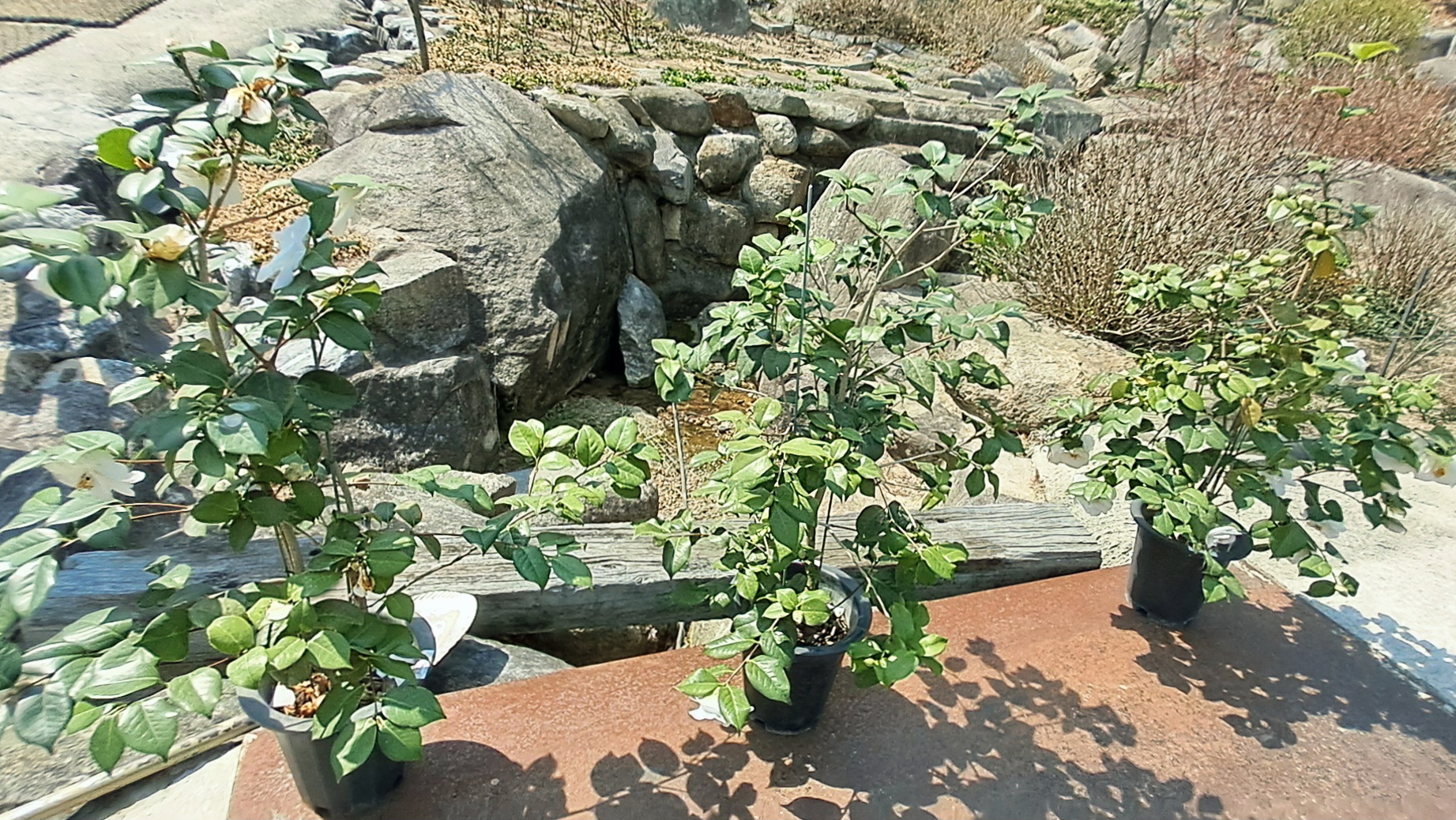 보기도 귀한 홑백동백꽃이다.우리가 보는 동백은 모두 "겹"이다.