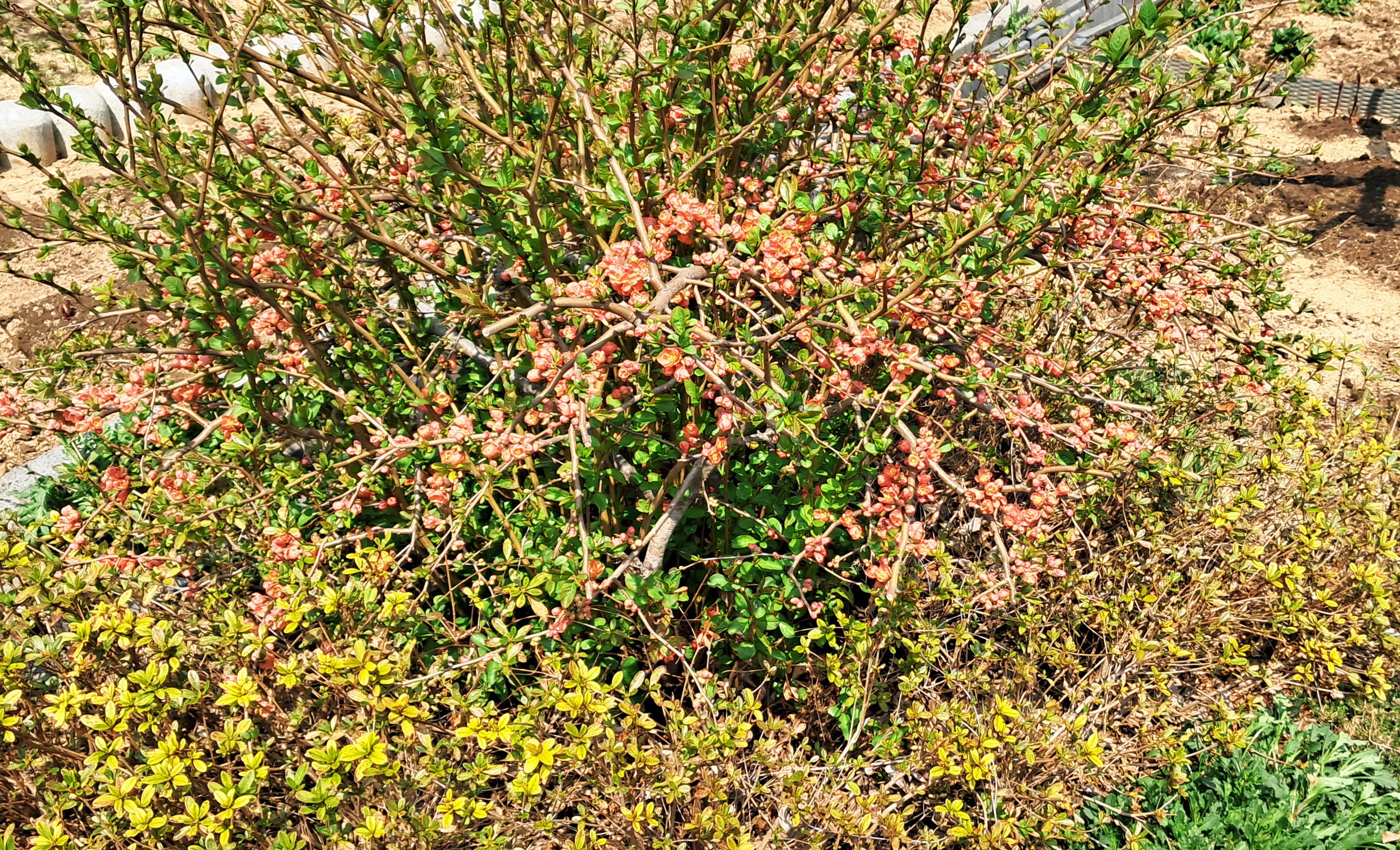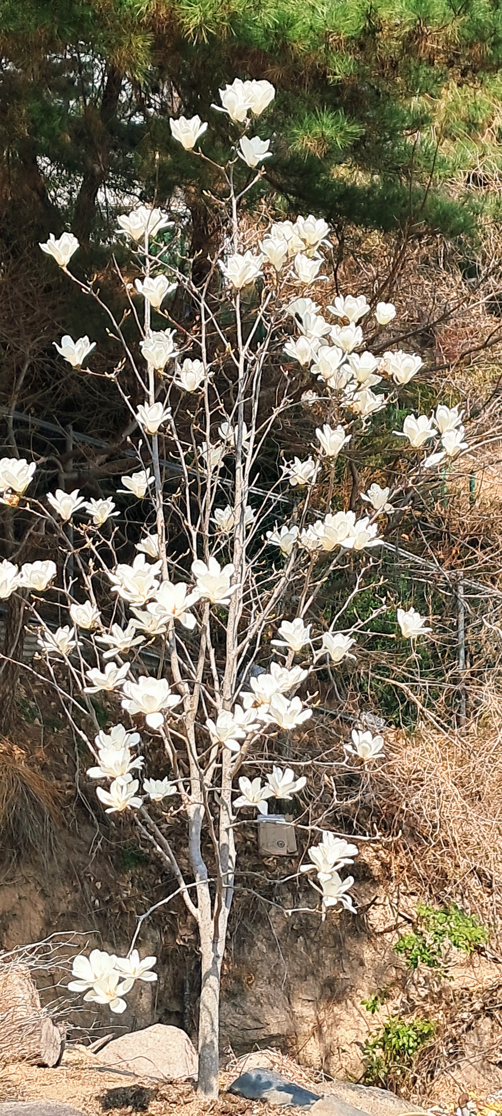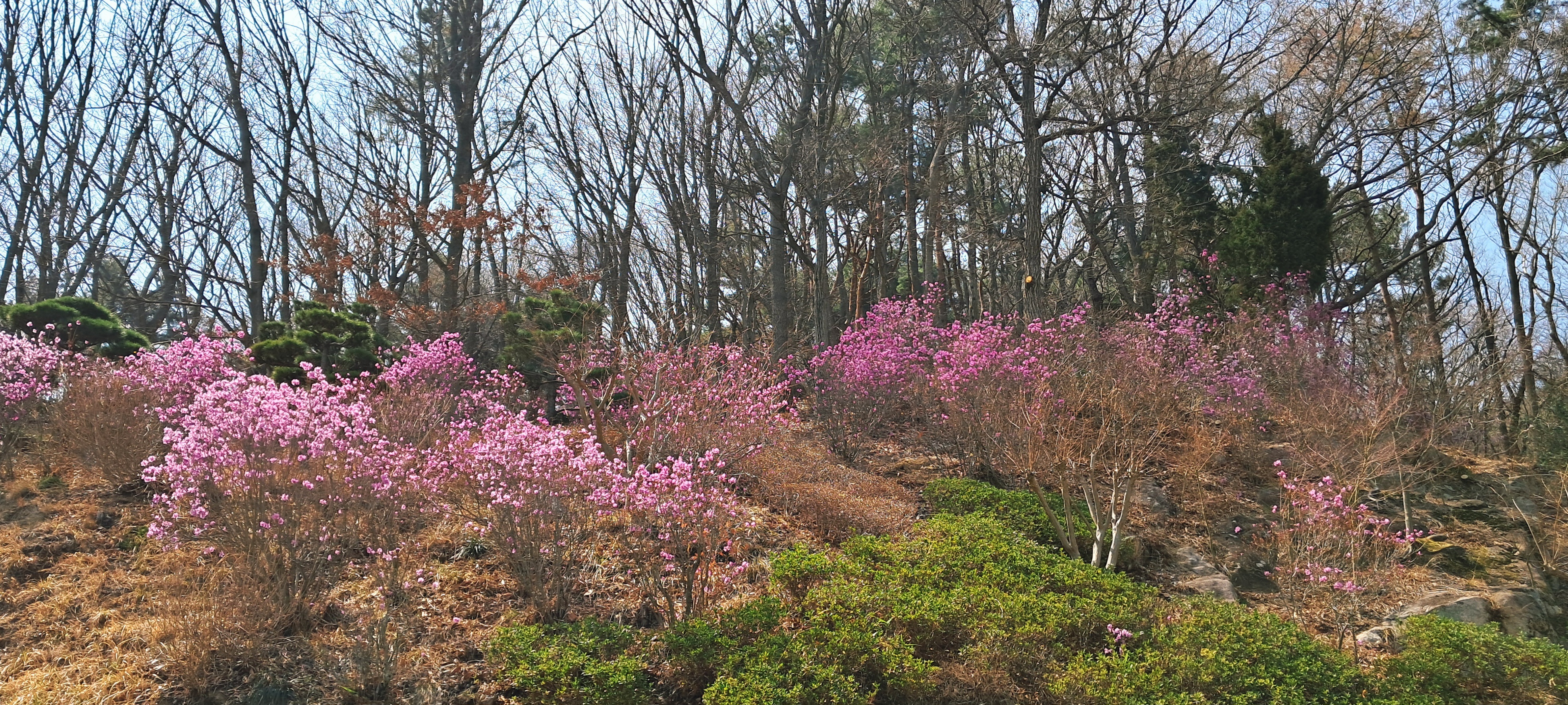 뒷산의 진달래는 활짝 피었지만 정원 전체는 아직 봄이 아니네.